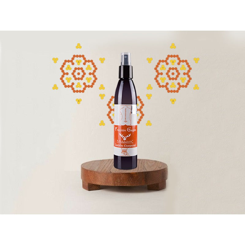 Friccione el área afectada hasta que absorba, para dolores profundos combine con Pomada Venadito Huichol , cubra inmediatamente para vaporizar.